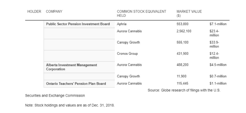 And recently, three of Canada’s regional pension funds, worth a combined C$441.1 billion, have started thinking in green. That is, they’re now making pension investments in the marijuana space.